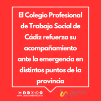 El Colegio Profesional de Trabajo Social de Cádiz refuerza su acompañamiento ante la emergencia en distintos puntos de la provincia