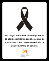 El Colegio Profesional de Trabajo Social de Cádiz se solidariza con el colectivo de educadores por el presunto asesinato de una compañera en Badajoz.