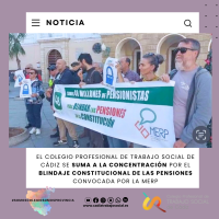 El Colegio Profesional de Trabajo Social de Cádiz se suma a la concentración por el Blindaje Constitucional de las Pensiones convocada por la MERP