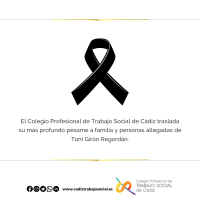 El Colegio Profesional de Trabajo Social de Cádiz traslada su más profundo pésame a familia y personas allegadas de Toni Girón Regordán.