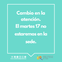 Mañana, martes 17, nuestra sede permanecerá cerrada y no habrá atención presencial ni telefónica, ya que estaremos participando en las actividades organizadas con motivo del Día Mundial del Trabajo Social en la UCA, en Jerez.