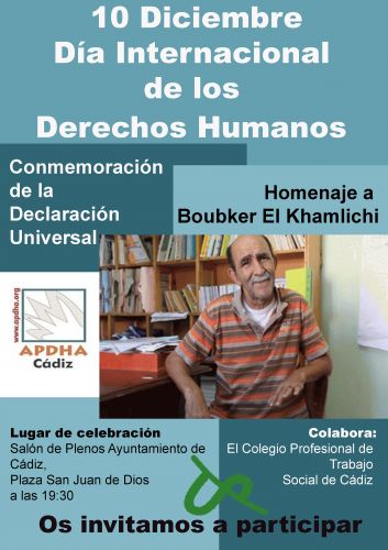 Esta tarde a las 19:30h El Colegio Profesional de Trabajo Social de Cádiz participará en el acto conmemorativo organizado por APDHA, que se va a celebrar con motivo del Día Internacional de los Derechos Humanos en el Salón de Plenos del Ayuntamiento de Cádiz.