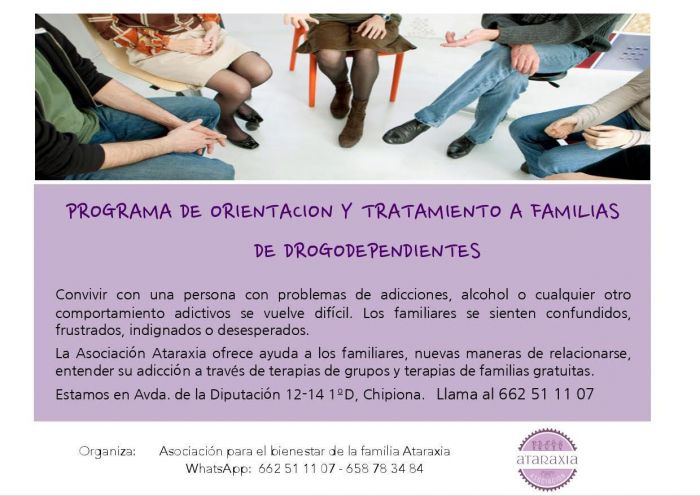 La asociación Ataraxia comienza un nuevo proyecto: Orientación y Tratamiento a las familias de drogodendientes, manteniendo el servicio de carácter gratuito.