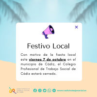 Informamos que el CPTS de Cádiz estará cerrado el 7 de octubre
