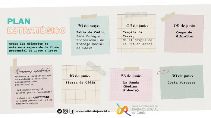 Participa como colegiada/o en el Plan Estratégico opinando y aportando para mejorar y construir el Colegio Profesional de Trabajo Social que más se adecúe a nuestro colectivo.