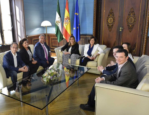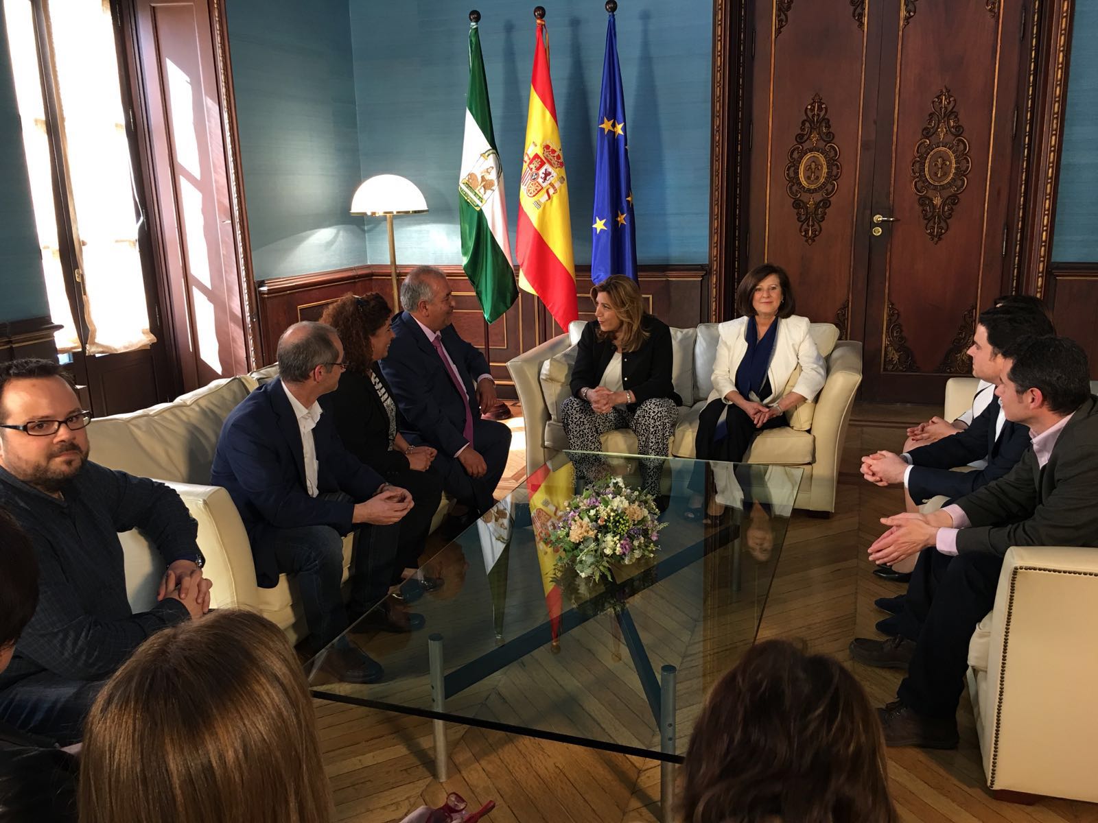 Sevilla, 26 de abril de 2016. El Consejo Andaluz de Colegios Profesionales de Trabajo Social, entidad que representa a más de 5.000 trabajadores sociales pertenecientes a los ochos colegios profesionales andaluces, ha mantenido un encuentro con la presidenta de la Junta de Andalucía, Susana Díaz, con el fin de informarle sobre el estado de la profesión en la Comunidad autónoma, así como sobre el posicionamiento de los profesionales de Trabajo Social andaluces sobre el proyecto de Ley de Servicios Sociales para Andalucía.
