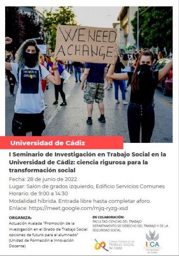 El próximo martes 28 de junio se celebra en la sede de Jerez de la Universidad de Cádiz, el Primer Seminario de Investigación en Trabajo Social.
