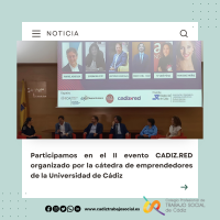 Desde el Colegio Profesional de Trabajo Social de Cádiz, venimos participando en las actividades propuestas por la Cátedra de Emprendedores con la intención de ofrecer a la colegiatura información útil para las iniciativas que puedan surgir en el ámbito profesional del Trabajo Social, así como, estar presente en el ecosistema emprendedor de la provincia de Cádiz.
