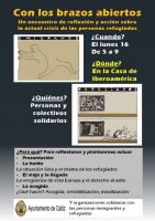 19:45-21:00 La acogida: La responsabilidad y las tareas de las ONGs, del Ayuntamiento y del movimiento solidario.Centrados en recibir información sobre la acogida, que hacer, campaña de sensibilización, propuestas de denuncia y movilización.