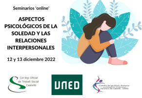 El Colegio Oficial de Trabajo Social de Castelló con la colaboración de la UNED y la Cátedra de Igualdad y Bienestar Psicológico UNED-Diputació de Castelló, organiza los Seminarios Online “Aspectos Psicológicos de la Soledad y las relaciones interpersonales”