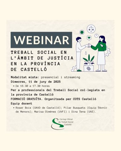 WEBINAR GRATUÏTA ORGANITZAT PEL COL·LEGI OFICIAL DE TREBALL SOCIAL DE CASTELLÓ .