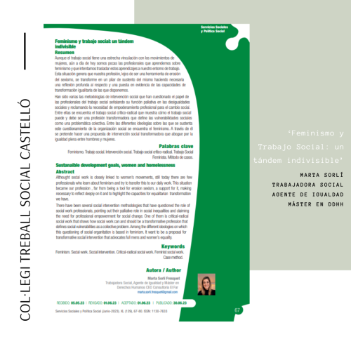“Feminisme i Treball Social és, sens dubte, un binomi indivisible; la nostra professió és una disciplina profundament feminista que posiciona les cures en el centre de l’organització política