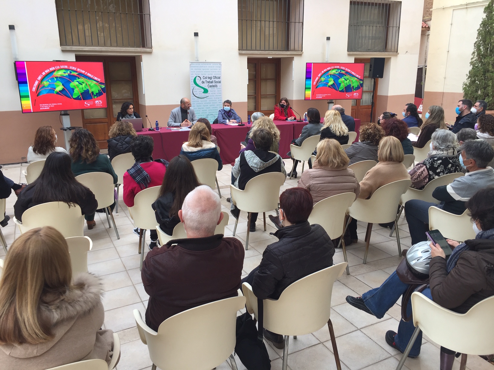Castelló, 11/03/2022.- COTS Castelló ha celebrado este jueves en un entorno privilegiado como el Patio del Centro Cultural Las Aulas el Día Mundial del Trabajo Social. Una jornada que ha reunido a decenas de colegiados y colegiadas; al presidente del COTS, Jaume Agost; a Emi Vicente, presidenta del Consejo General del Trabajo Social; a la diputada Lluïsa Monferrer; y la concejala de Bienestar Social del Ayuntamiento de Castelló, Mary Ribera.