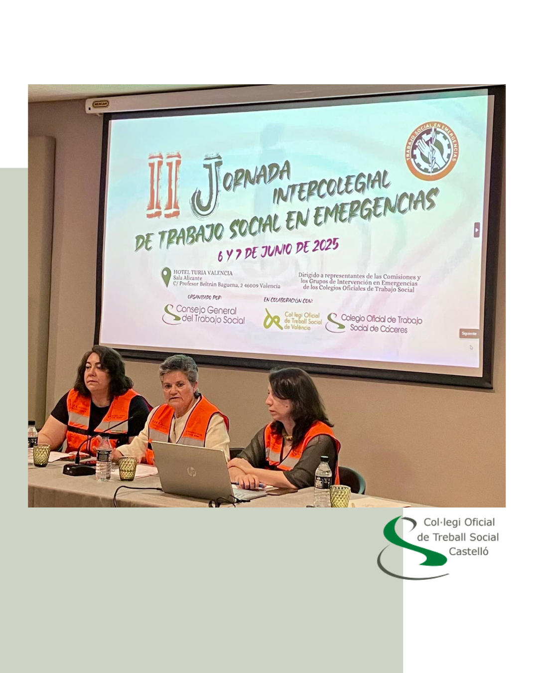 Castelló, 09/06/2025.- El Col·legi Oficial de Treball Social de Castelló ha participat aquest cap de setmana, representat per la secretària del COTS, Maribel Piera, en les II Jornades Intercol·legials de Treball Social en Emergències, celebrades els dies 6 i 7 de juny a València.