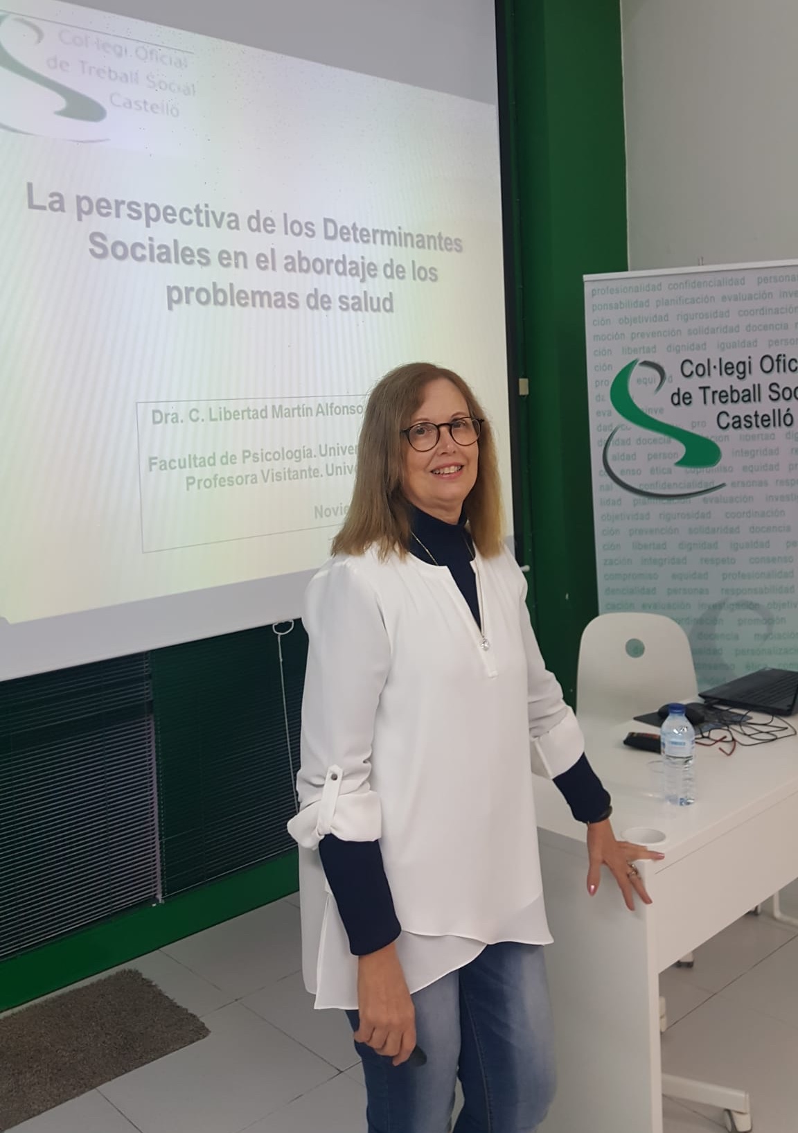 Castelló, 13/11/2019.- El Col•legi Oficial de Treball Social (COTS) de Castelló ha analitzat aquest dimecres com els processos d’exclusió social repercuteixen en la salut dels grups vulnerables. Ho ha fet en la xarrada La perspectiva dels determinants socials en l’abordatge dels problemes de salut, impartida per Libertad Martín, professora titular de Psicologia de la Salut en la Universitat de l’Havana (Cuba) i a l’Escola Nacional de Salut Pública de la capital del Carib.