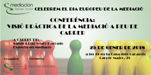 Castellón, 23/01/2018.- El Col·legi Oficial de Treball Social de Castelló (COTS) celebra este jueves, 25 de enero (18.00 horas, Casa dels Caragols de Castellón) el Día Europeo de la Mediación con la conferencia ‘Visión práctica de la mediación a pie de calle’, impartida por la experta en este campo Sandra Luz Souto Parrados y organizada por la Comisión de Mediación del Colegio. Una charla que llega en vísperas de la aprobación el próximo mes de febrero del anteproyecto de la Ley de Mediación de la Comunitat Valenciana anunciado hace escasos días por la consellera de Justicia, Administración Pública, Reformas Democráticas y Libertades Públicas, Gabriela Bravo.