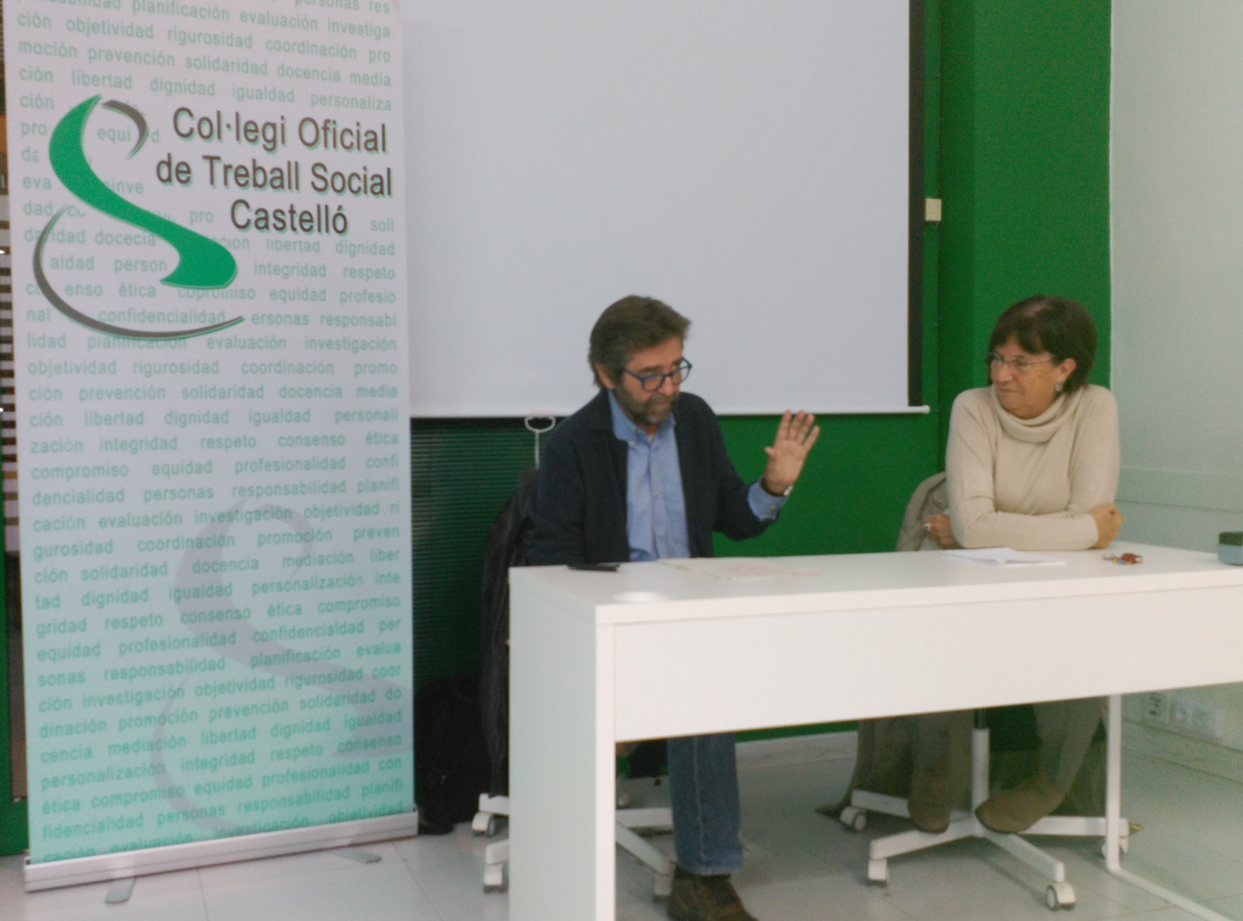 El objetivo de la sesión ha sido ahondar en el conocimiento de los procesos para demandar la incapacidad laboral y de baja por enfermedad. El profesional del trabajo social interviene en alguno de ellos como acompañante e intermediario entre el demandante y el INSS en los casos en los que el ciudadano desconoce, por diferentes motivos o situación personal, el proceso a seguir en la Seguridad Social para solicitar una invalidez o baja laboral. Casos que, según datos del Col·legi, suponen entre el 10% y el 12% del total. “Lo que hacemos como trabajadores sociales es acompañar a esa persona, facilitarle la burocracia y, de algún modo, humanizar un procedimiento que a veces resulta complicado”, ha recordado desde la junta del organismo colegial Carmen Barceló.