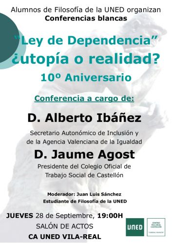 El President del C0l·legi, Jaume Agost, participa el proper día 28 en les Conferències Blanques de la UNED de Vila-real amb el títol “Llei de Dependència”: utopia o realitat?