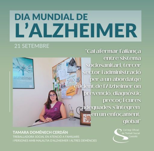 - “Cal afermar l’aliança entre sistema sociosanitari, tercer sector i administració per a un abordatge eficient de l’Alzheimer on prevenció, diagnòstic precoç i cures adequades s’integren en un enfocament global”, afirma la treballadora social Tamara Doménech