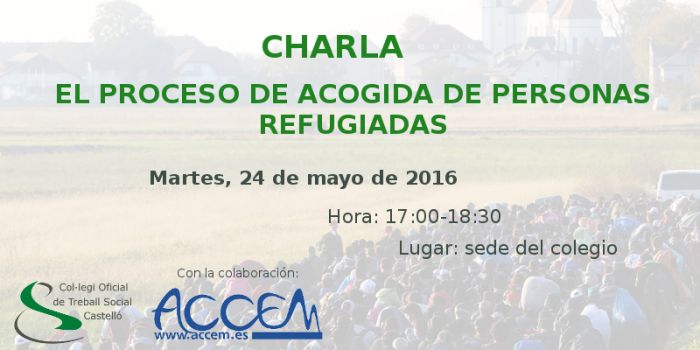 Castellón, 24/05/2016.- El Col·legi de Treball Social de Castelló ha celebrado esta tarde en su sede de la calle Alcalde Tárrega una conferencia bajo el título ‘El proceso de acogida de personas refugiadas’, con el que quiere ahondar en el compromiso “y la necesidad” de mantener vivo el debate sobre esta crisis humanitaria para que no caiga en olvido.