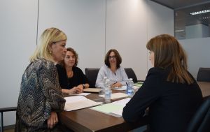La consellera de Justicia, Administración Pública, Reformas Democráticas y Libertades Públicas, Gabriela Bravo, se ha reunido hoy con las representantes de los tres colegios oficiales de Trabajo Social de la Comunidad Valenciana para establecer vías de colaboración entre los profesionales agrupados en estos colectivos y la administración de Justicia en la Comunidad Valenciana. Por parte de estas organizaciones han acudido a la reunión Elena Puig Reig, María Pilar Busquets y Elena García Esteve de los colegios de Valencia, Castellón y Alicante.