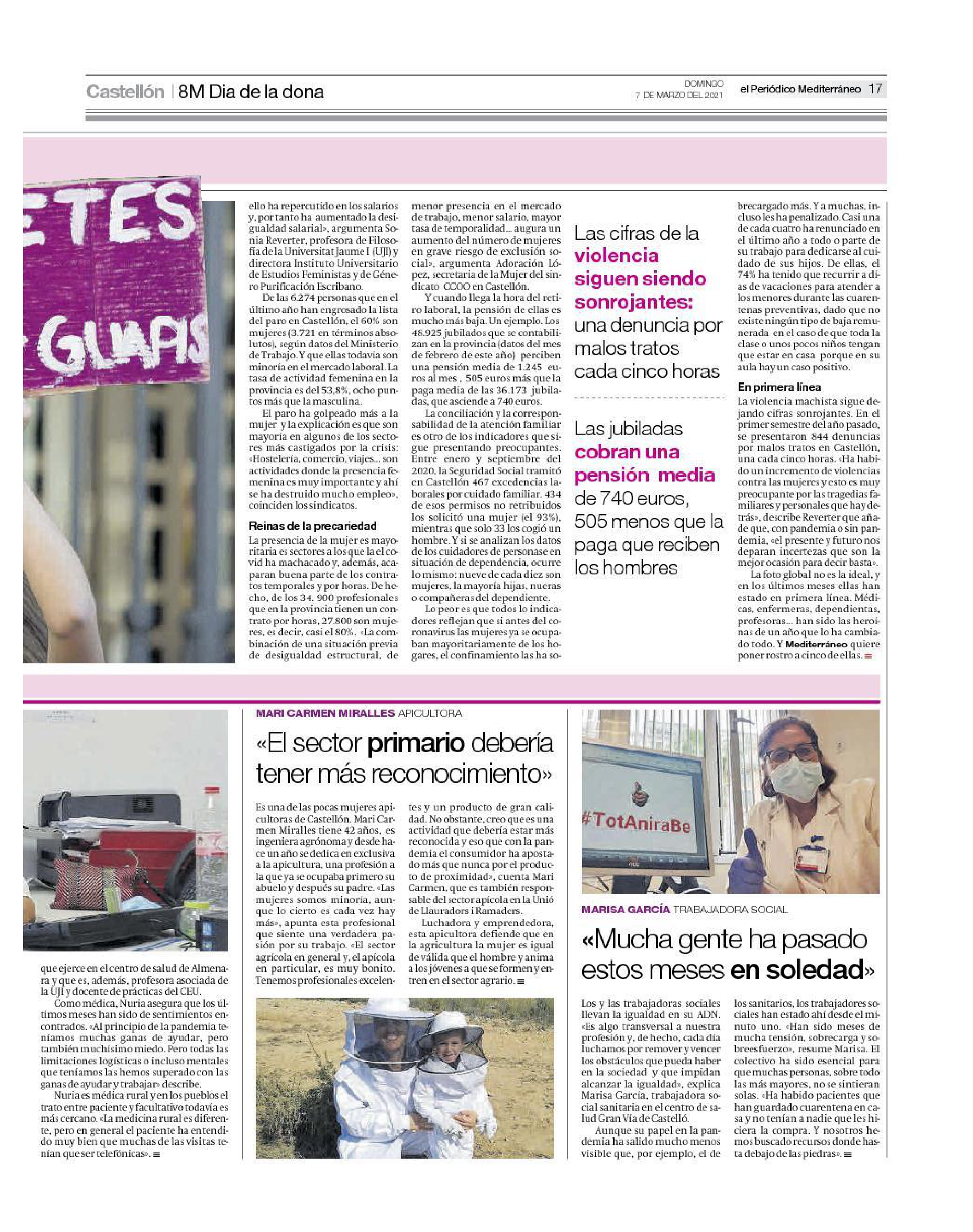 Nuestra compañera da voz al colectivo de profesionales del Trabajo Social en este reportaje de Mediterráneo sobre ‘Mujeres esenciales frente a la pandemia’ con motivo del 8M