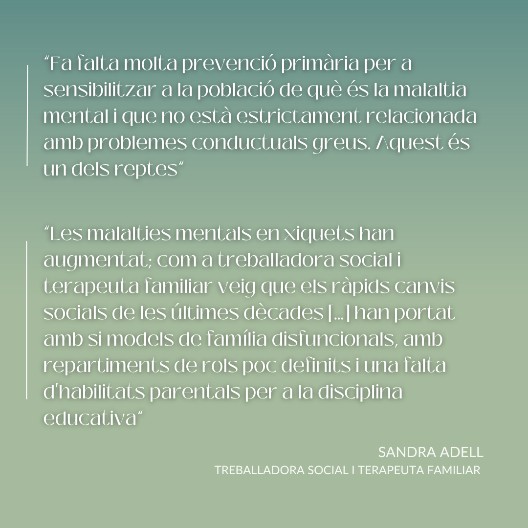 P.- Encara que potser s’ha posat més el focus en el tractament de la salut mental en l’edat adulta, és evident que aquesta també ha de fer parada en la infància. El 70% dels problemes de salut mental es desenvolupen en aquesta edat primerenca, segons les últimes investigacions. Les malalties mentals es manifesten més ara que abans en xiquets, xiquetes i adolescents? Sempre s’havia donat, però ara se li està donant visibilitat? Hi ha algun factor, o canvi social, que estiga interferint en la balança?