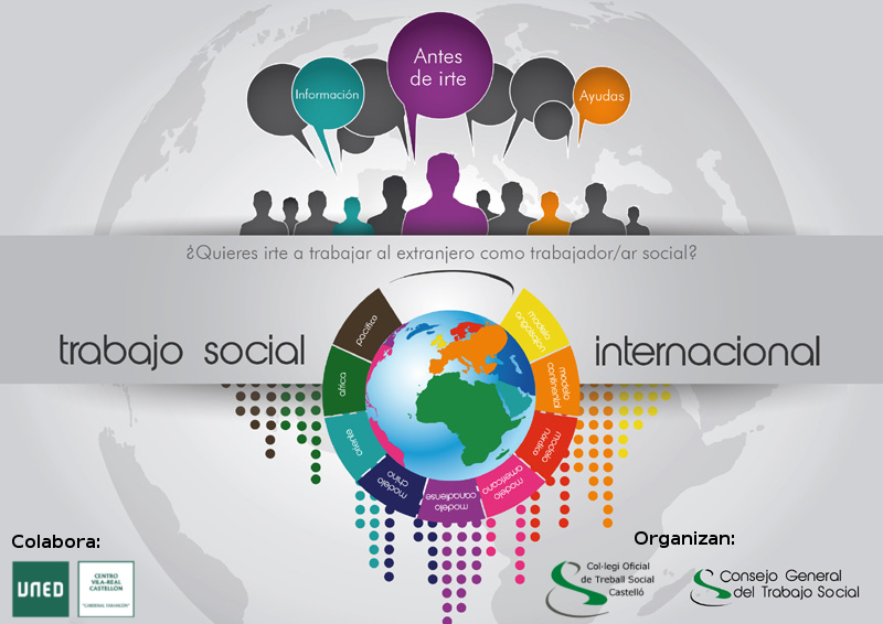 Dentro de las actividades formativas e informativas del Colegio se ha considerado oportuno celebrar la conferencia “El trabajo social internacional” con la finalidad de ofrecer información a todos/as los/as trabajadores/as sociales y alumnado en un momento clave en el que la opción de salir fuera de España buscando nueva oportunidades laborales es más incipiente.