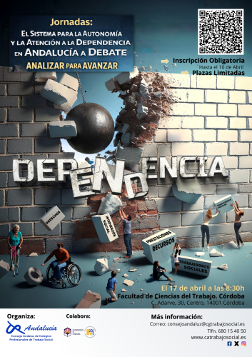 Horarioviernes 17 de abril de 2026El Consejo Andaluz de Trabajo Social, en colaboración con la Facultad de Ciencias del Trabajo de la Universidad de Córdoba, celebrará el 17 de abril en el Salón de Actos de la Facultad citada, las jornadas tituladas “El Sistema para la Autonomía y Atención a la Dependencia en Andalucía a debate: Analizar para Avanzar”, un espacio de reflexión y análisis sobre la situación actual del Sistema para la Autonomía y Atención a la Dependencia en Andalucía.