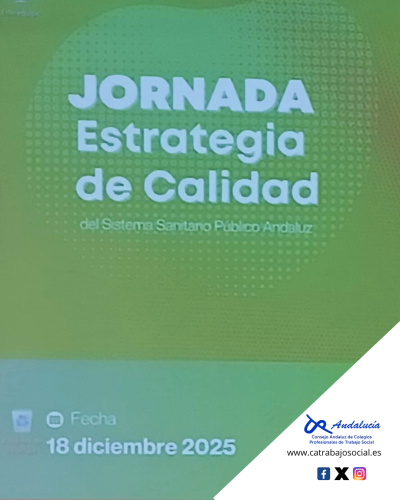 El Consejo Andaluz de Trabajo Social (CATS) ha participado en la Jornada Participativa de la I Estrategia de Calidad del Sistema Sanitario Público de Andalucía, un encuentro que ha supuesto el cierre del proceso de análisis de la situación y diagnóstico impulsado por la coordinación y la oficina técnica de la Estrategia, en el que previamente se había contado con la participación de profesionales y ciudadanía.