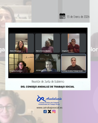 El martes 13 de enero de 2026 se celebraba, en formato telemático, la reunión de la Junta de Gobierno del Consejo Andaluz de Colegios Profesionales/Oficiales de Trabajo Social.