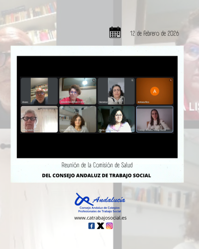 La Comisión de Salud del Consejo Andaluz de Colegios Profesionales/Oficiales de Trabajo Social celebró el pasado 12 de febrero de 2026 una nueva reunión de trabajo en formato telemático, en horario de 17:00 a 18:30 horas.