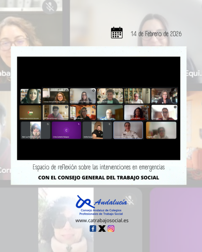 El 14 de febrero de 2026, en horario de 10:00 a 14:00 horas, se celebró un encuentro online convocado por el Consejo General del Trabajo Social con el objetivo de generar un espacio de análisis, reflexión y mejora compartida tras las actuaciones desarrolladas en dos situaciones recientes de emergencia: el accidente ferroviario ocurrido en Adamuz y los sucesos derivados de diversas incidencias meteorológicas en el territorio andaluz.