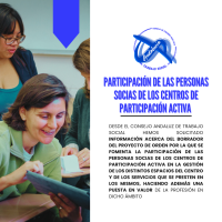 Desde el Consejo Andaluz de Trabajo Social hemos solicitado información acerca del borrador del Proyecto de orden por la que se fomenta la participación de las personas socias de los centros de participación activa en la gestión de los distintos espacios del centro y de los servicios que se presten en los mismos, haciendo además una puesta en valor de la profesión en dicho ámbito.