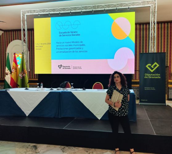 Los días 5, 6 y 7 de junio en Almuñecar, el Consejo Andaluz de Colegios Profesionales y Oficiales de Trabajo Social acudimos a la Escuela de Verano de Servicios Sociales organizada por la Diputación de Granada. En esta ocasión, ha sido nuestra Coordinadora de la Comisión de Servicios Sociales y Dependencia quien ha participado en esta.