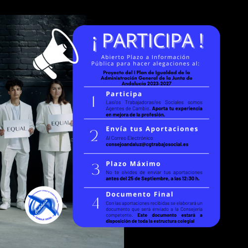 Resolución de 8 de septiembre de 2023, de la Secretaría General para la Administración Pública, por la que se acuerda someter a información pública el proyecto del «I Plan de Igualdad de la Administración General de la Junta de Andalucía 2023-2027».