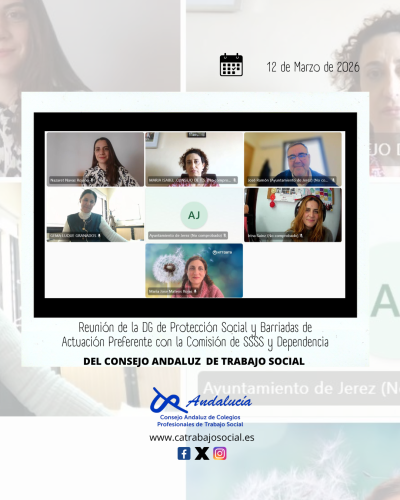 El Consejo Andaluz de Trabajo Social, a través de su Comisión de Servicios Sociales y Dependencia, ha mantenido una reunión técnica con la Dirección General de Protección Social y Barriadas Desfavorecidas con el objetivo de abordar cuestiones relacionadas con el PRISO.