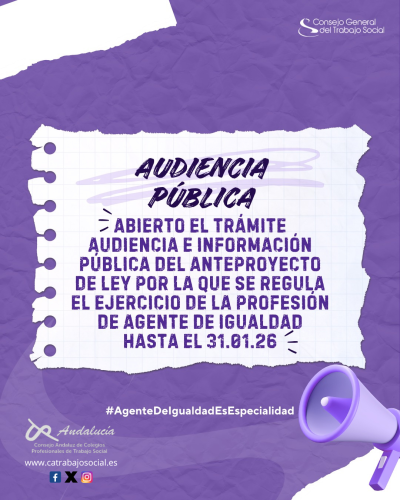 El trámite de audiencia pública del Anteproyecto de Ley del Agente de Igualdad está abierto hasta el 31/01/2026.