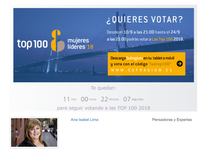 VOTAR A ANA ISABEL LIMA FERNÁNDEZ, PRESIDENTA DEL CONSEJO GENERAL DEL TRABAJO SOCIAL EN EL @LASTOP100