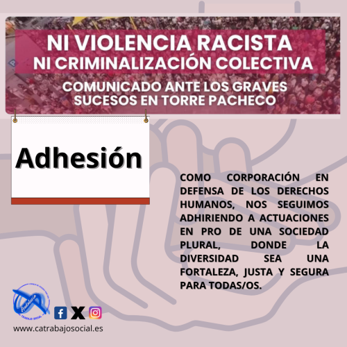 Desde el Consejo Andaluz de Trabajo Social continuamos muy preocupadas/os con los graves sucesos que acontecieron en Torre Pacheco. Este no es un caso aislado, sino que se suma a otras agresiones racistas y xenófobas que no dejan de crecer en todo el territorio, alimentadas por discursos de odio y bulos que fracturan la cohesión social. Como corporaciones en defensa de los derechos humanos, tanto a nivel andaluz como estatal, nos seguimos adhiriendo a actuaciones en pro de una sociedad plural, donde la diversidad sea una fortaleza, justa y segura para todas/os.