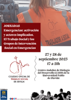 El Grupo de Intervención Social en Emergencias del Colegio Oficial de Trabajo Social de Sevilla está organizando unas Jornadas bajo el título «Emergencias: Activación y actores implicados. El Trabajo Social y los Grupos de Intervención Social en Emergencias» siendo un encuentro profesional que reunirá a los diferentes Servicios y Cuerpos que intervienen en una situación de Emergencias, donde se podrá conocer el trabajo de intervención que se realiza, las competencias desde cada servicio y la coordinación entre todos, poniendo el foco de atención en cómo afecta el Daño Social en la acción de las Emergencias.