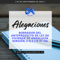 El Consejo Andaluz de Colegios Profesionales y Oficiales de Trabajo Social, ha presentado Alegaciones al Borrador del Anteproyecto de Vivienda de Andalucía en su Versión_V-0.2 (19 07 2024), invitados por la Consejería de Fomento, Articulación del Territorio y Vivienda.