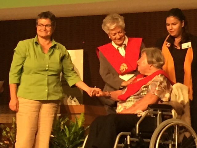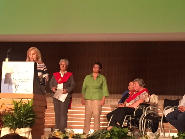 La secretaria general del Consejo, Emiliana Vicente, participó en el acto en que se hizo mención honorífica a las primeras directoras de estudios de asistente social de la Universidad Laboral de Zaragoza, Dña. Mª Ángeles Gotor y Dña. Mercedes Vilas. Emiliana Vicente, que fue alumna de la escuela, participó en el homenaje a Mercedes Vila.