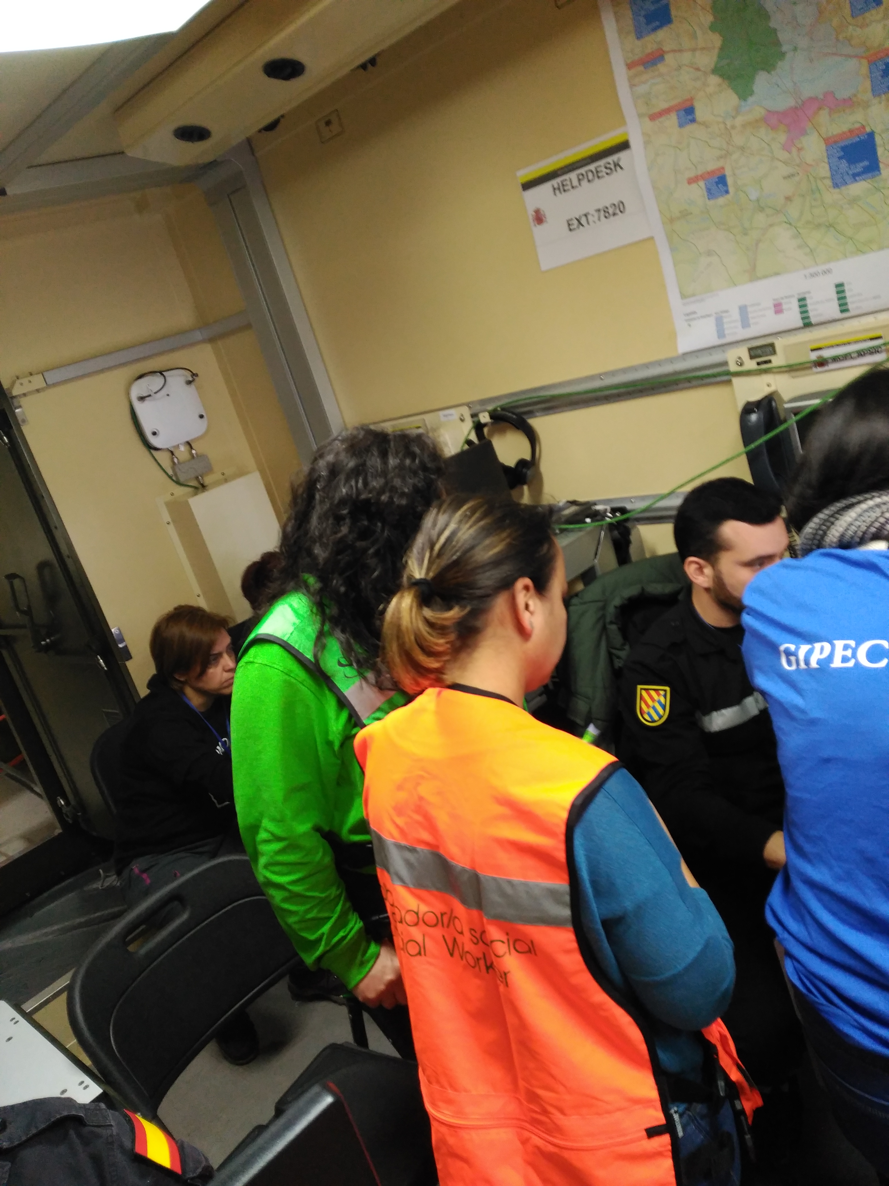 Las trabajadoras sociales participan en dos localizaciones ubicadas en Jaca cerca de las zonas afectadas. Los equipos de trabajadoras sociales no solo aprenderán funciones propias de la profesión durante catástrofes, sino que se podrán vivir en primera persona la activación de los planes y se coordinaran con otros equipos multidisciplinares que participan en este tipo de acciones. Las principales funciones que se llevarán a cabo serán: dar cobertura a las personas afectadas y sus familiares por la catástrofe centrándose en informar, orientar, gestionar y derivar recursos y prestaciones sociales, así como realizar acompañamiento social, localización y reagrupación familiar.