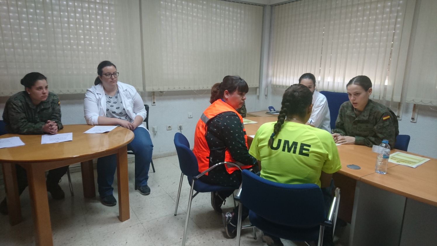 Fotografías de la participación de las trabajadoras sociales especializadas en emergencias en el Ejercicio organizado por la UME.