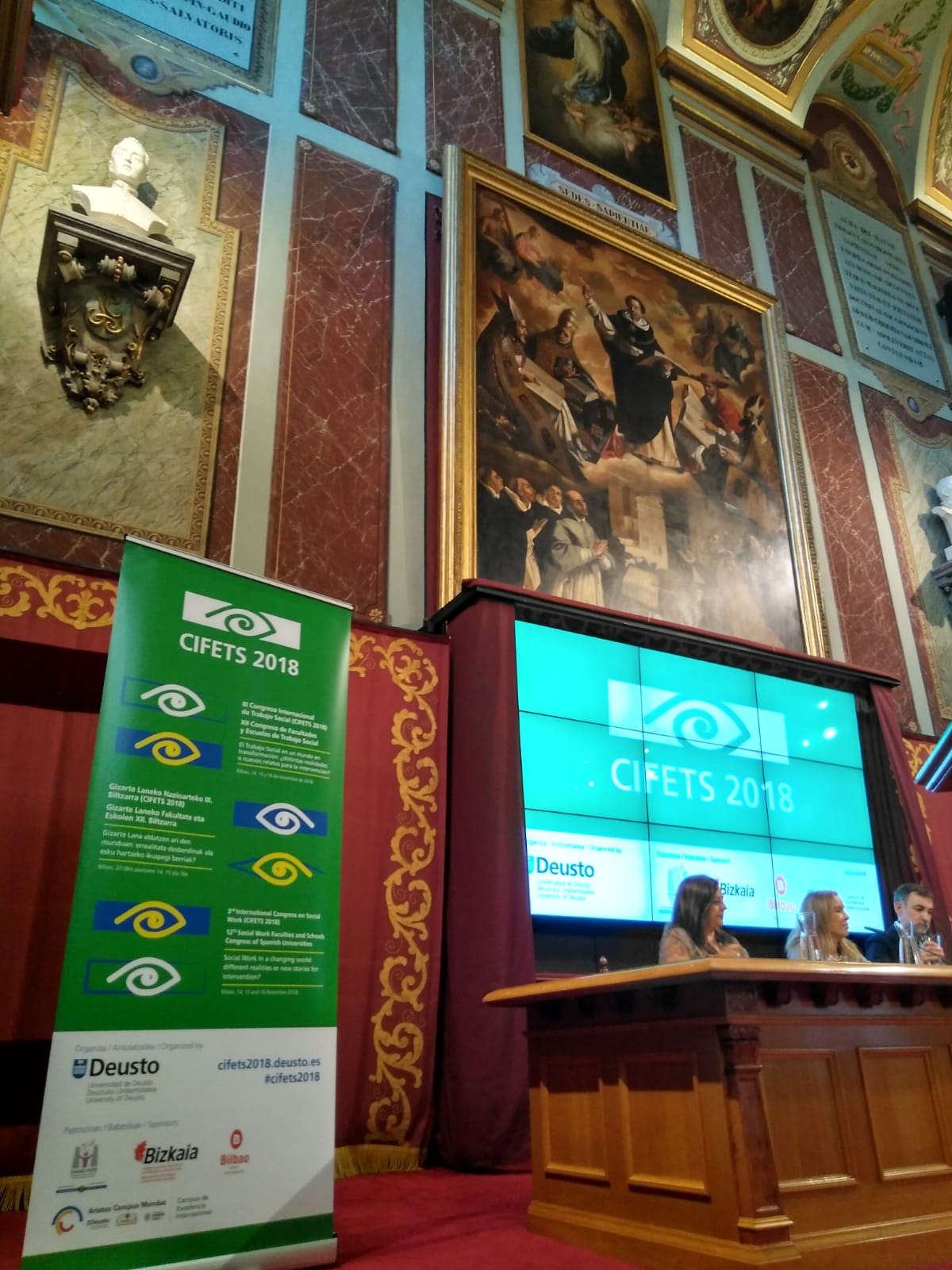 Encarna Peláez, presidenta en funciones del Consejo, ha participado como miembro del Comité de Honor en el III Congreso Internacional y XII Congreso de Facultades y Escuelas de Trabajo Social de las universidades españolas (CIFETS 2018), celebrado del 14 al 16 de Noviembre en el campus de Bilbao de la Universidad de Deusto.
