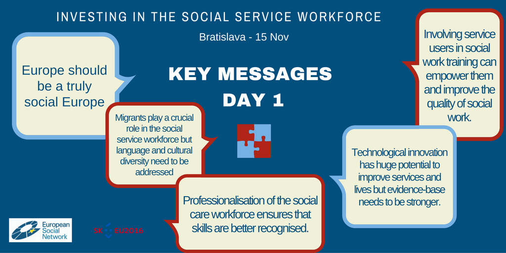 En este evento la Red Social Europea (ESN), de la que el Consejo forma parte desde 2015, con la colaboración de la Presidencia Eslovaca del Consejo de la UE, reunió a un grupo de 100 expertos europeos, responsables políticos y representantes locales, nacionales y regionales de 26 países europeos y EEUU sobre la planificación y gestión de los que trabajan para los servicios sociales en Europa, concretamente trabajadores sociales y profesionales de la atención social que trabajan en todos los ámbitos, desde la protección de la infancia hasta los servicios para personas con discapacidad o personas mayores.