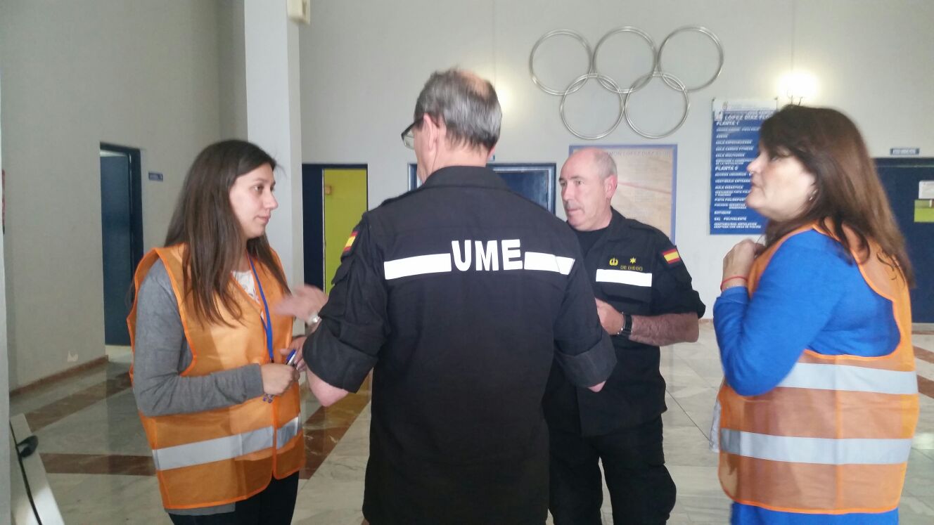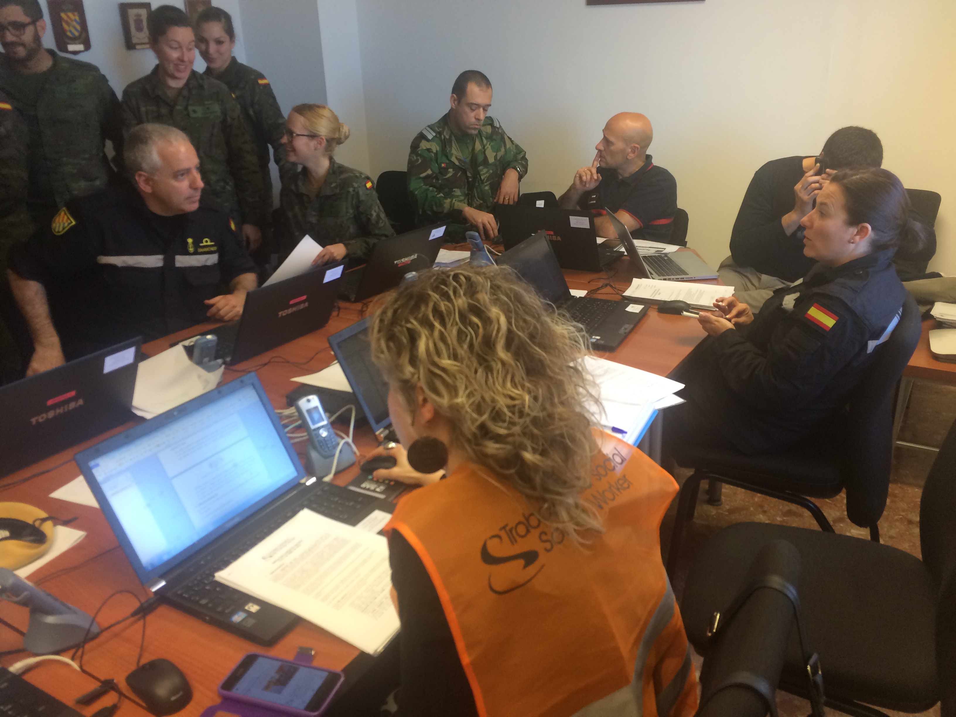 Participación de los y las trabajadoras sociales en el #EjercicioSUR16, simulacro de emergencias organizado por la UME, del 4 al 7 de abril de 2016 en Ceuta, Sevilla y Madrid.