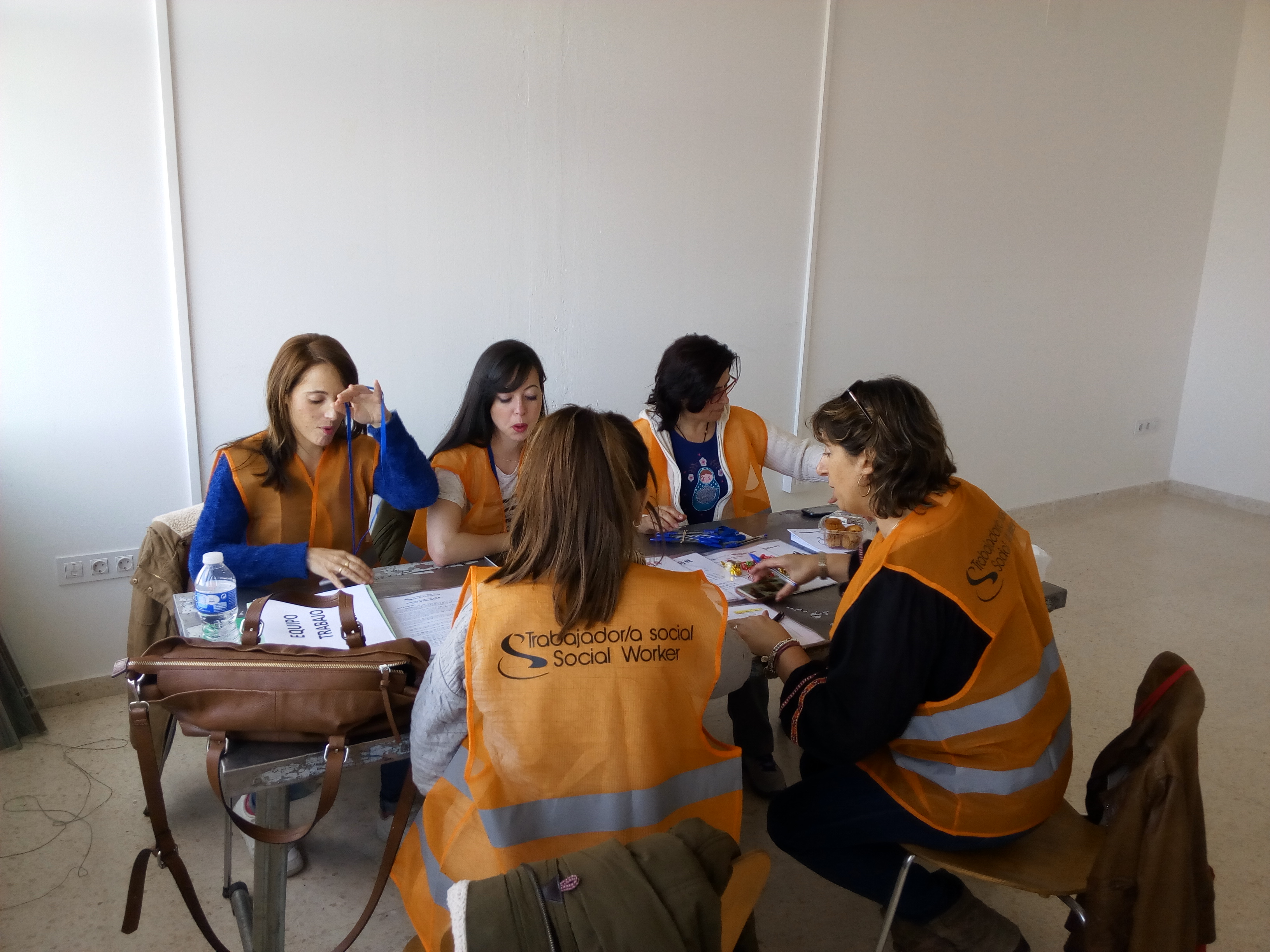 Este año los trabajadores sociales participan en tres localizaciones: el puesto de mando central en Madrid y los Centros de Ayuda a Damnificados/as y la Morgue en Sevilla y Ceuta. Los equipos de trabajadores sociales estarán constituidos por un coordinador y cuatro trabajadores sociales voluntarios.