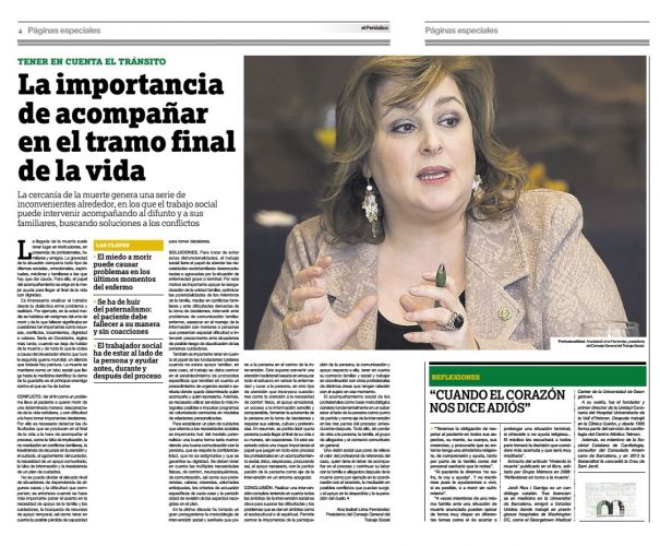 Ana I. Lima, presidenta del CGTS, destaca en una entrevista en El Periódico de Cataluña el papel de los y las trabajadoras sociales en el ámbito sociosanitario y sobre todo en la intervención social en el final de la vida.